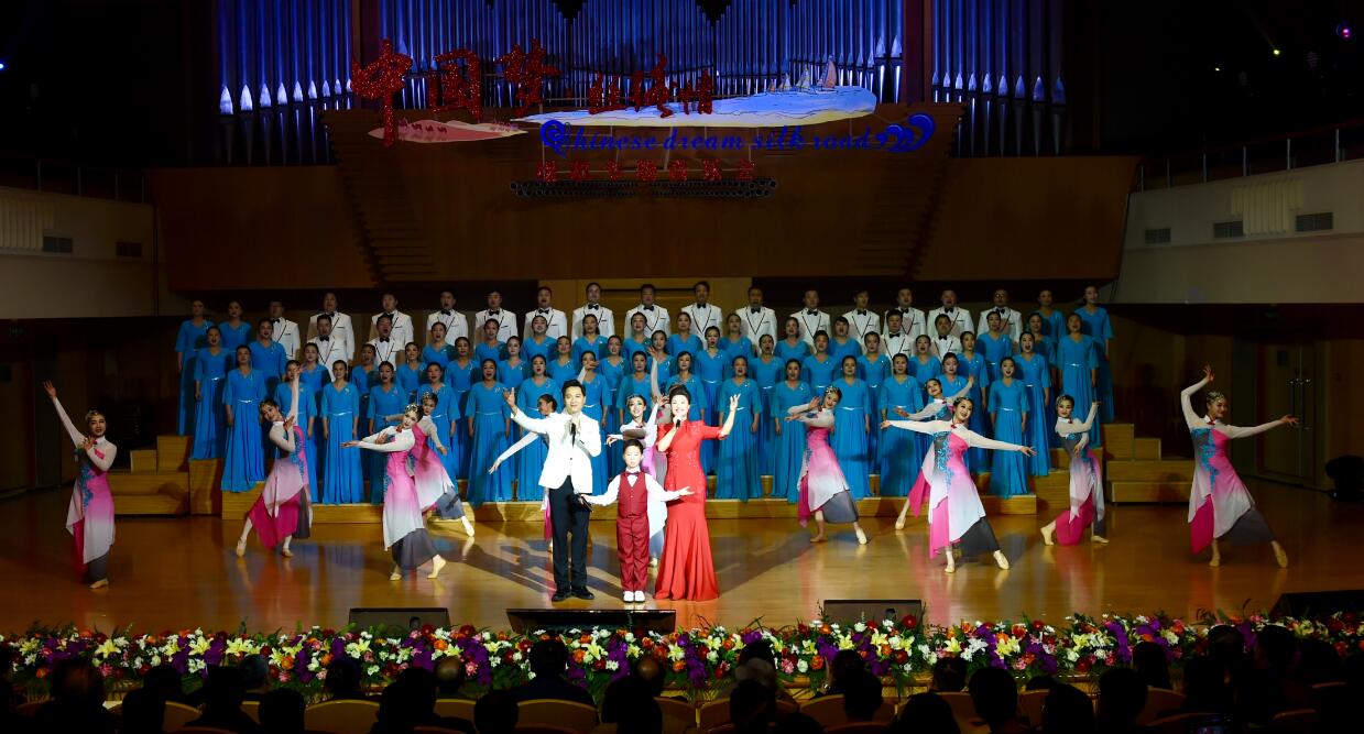 《中国梦·丝路情》组歌是国内彰显“一带一路”倡议的大型音乐作品,该作品由来自江苏连云港的我国青年作曲家王咏梅联手国内著名词作家、编曲家、歌唱家知名乐团及合唱团协力精心打造,表达了文艺工作者对于国家发展的美好祝福和发展繁荣文艺事业的不懈努力。该组歌以中国在全球发起“一带一路”倡议取得的成就为切入点,突出反映江苏在“一带一路”开放大格局中,立足新时代新征程全力做好扩大向东开放和引领向西开放的文章,也表现了连云港在“一带一路”倡议战略支点建设中焕发出的光辉。作品以点、线、面结合的方式构建整部乐章,以舒展的音律、优美的旋律、气势的交响、激昂的合唱诠释文艺工作者眼中的“一带一路”和伟大“中国梦”。(连宣 杜林 摄影 张晓辉 俞德春)