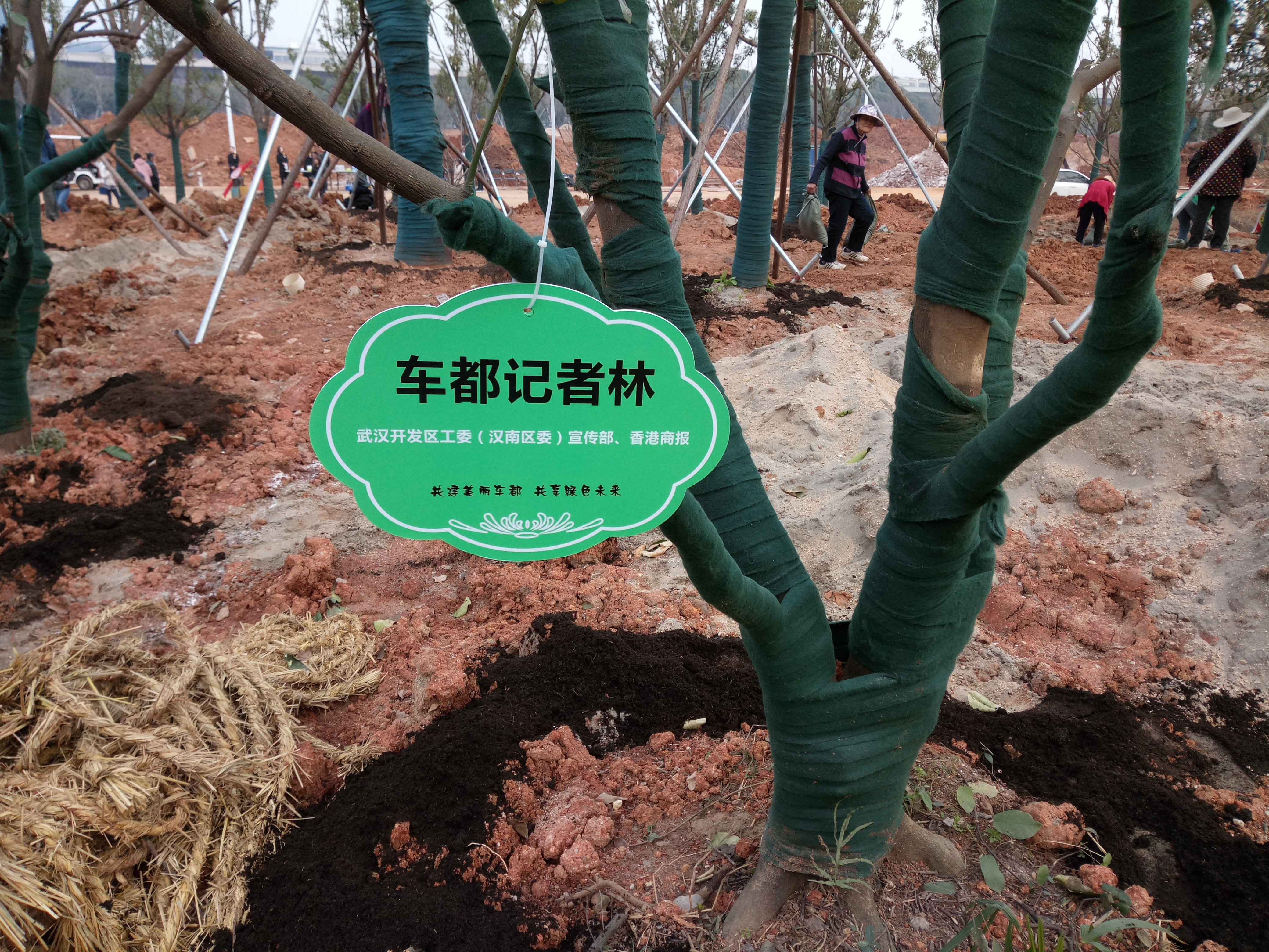 【香港商报网讯】一年美景春光好,植树播绿正当时。3月13日上午,武汉开发区与人民日报、新华社、光明日报、中新网等26家中央驻鄂新闻媒体,省、市新闻媒体,新媒体的近百名记者,来到七军会主场馆武汉体育中心,共植车都记者林,为七军会建设添一抹新绿。