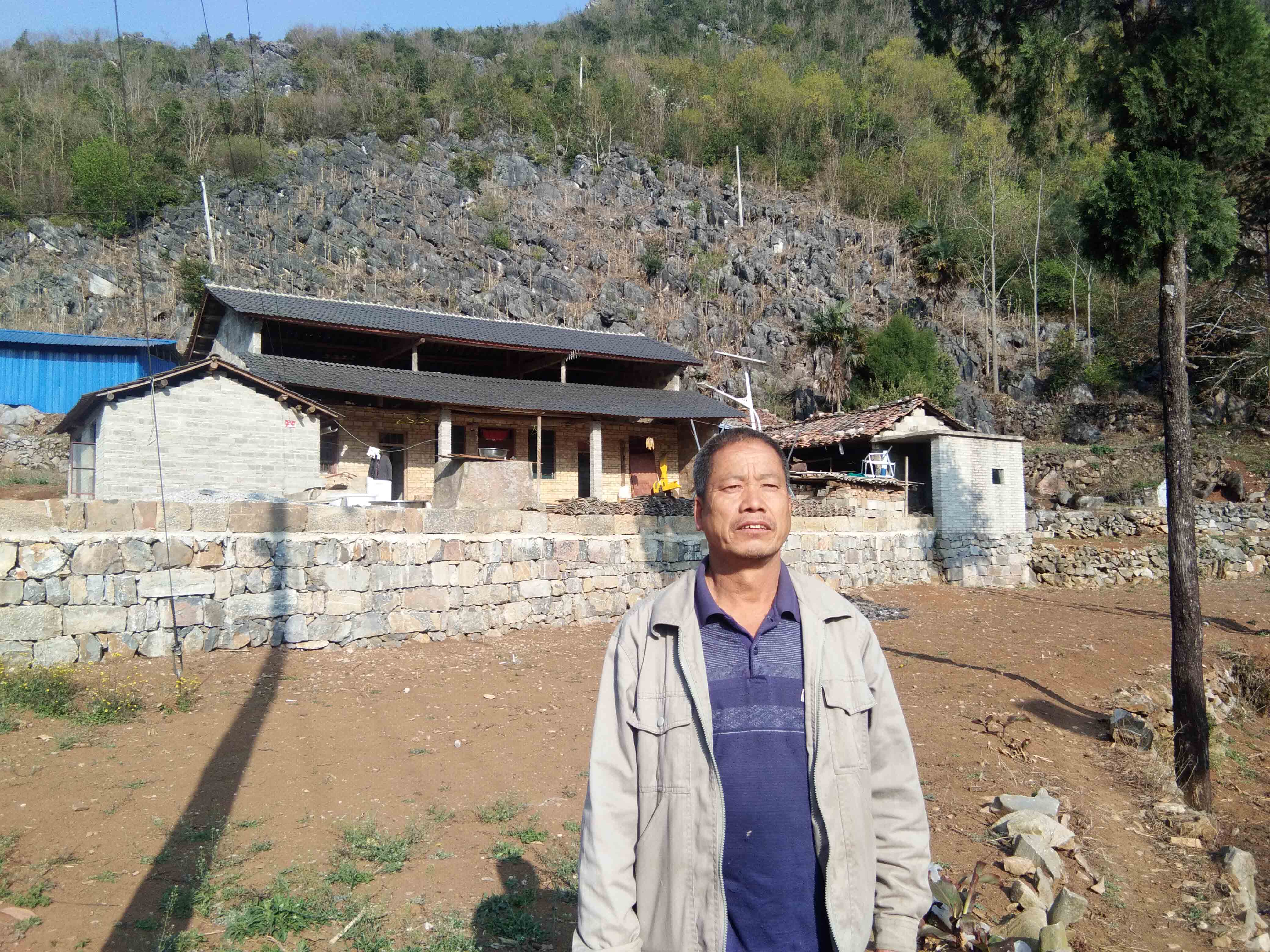 沿着陡坡,顺着一公里长的水泥路往前走,行至村头,最先映入眼帘的是硕大石岩上的“实干”二字,路旁石块上撬杠、铁锤、钢钎等工具留下的印记依稀可见,而村里种着的核桃树、三七和大量养殖的乌骨鸡,还有那一栋栋新房子,好像在宣告着15户人家12年的苦干没有白费。