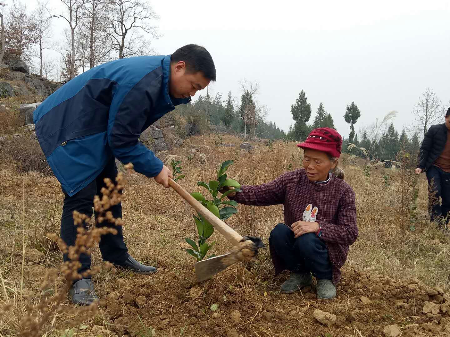 杜尚会指导村民移栽柚苗。