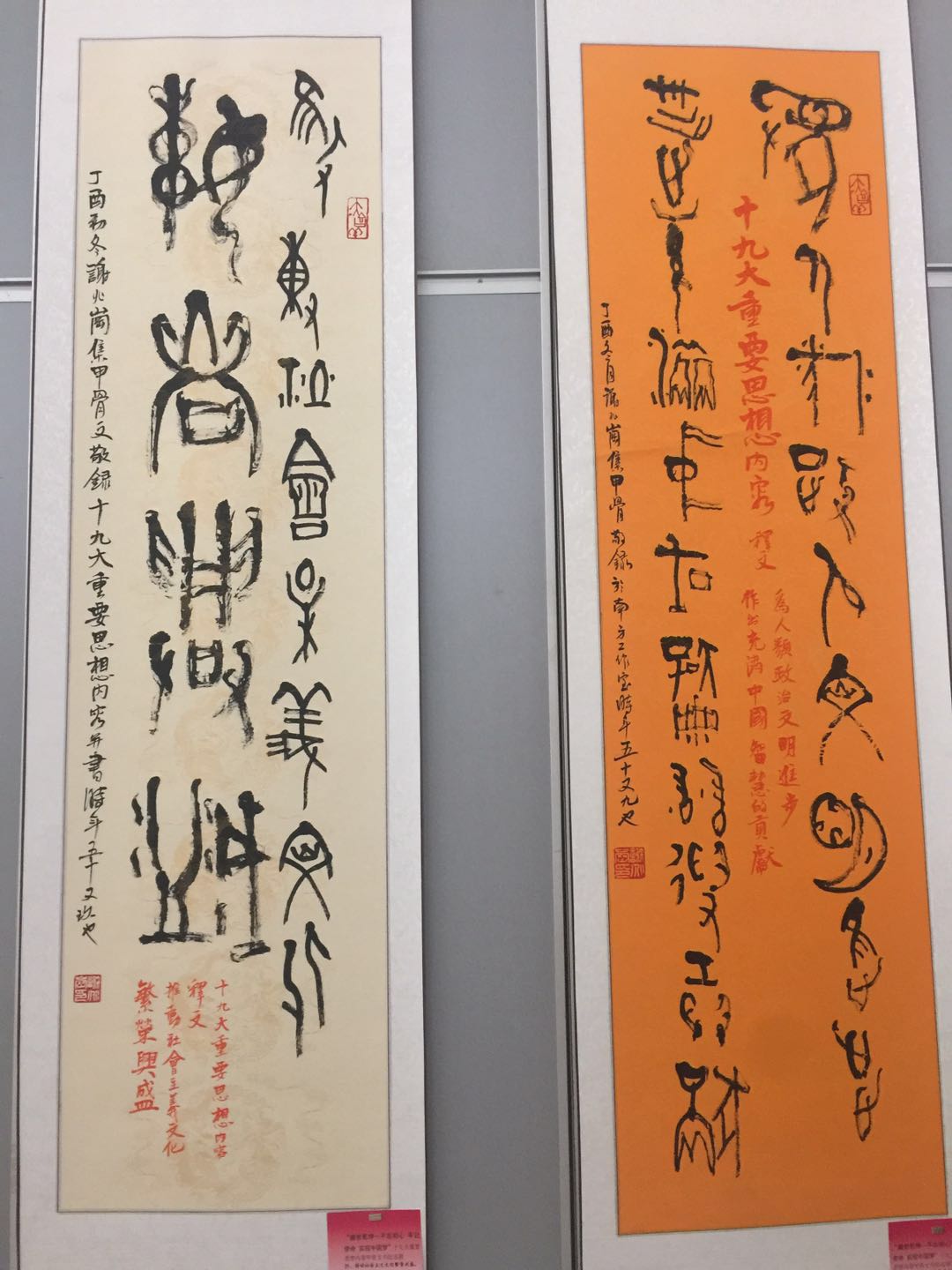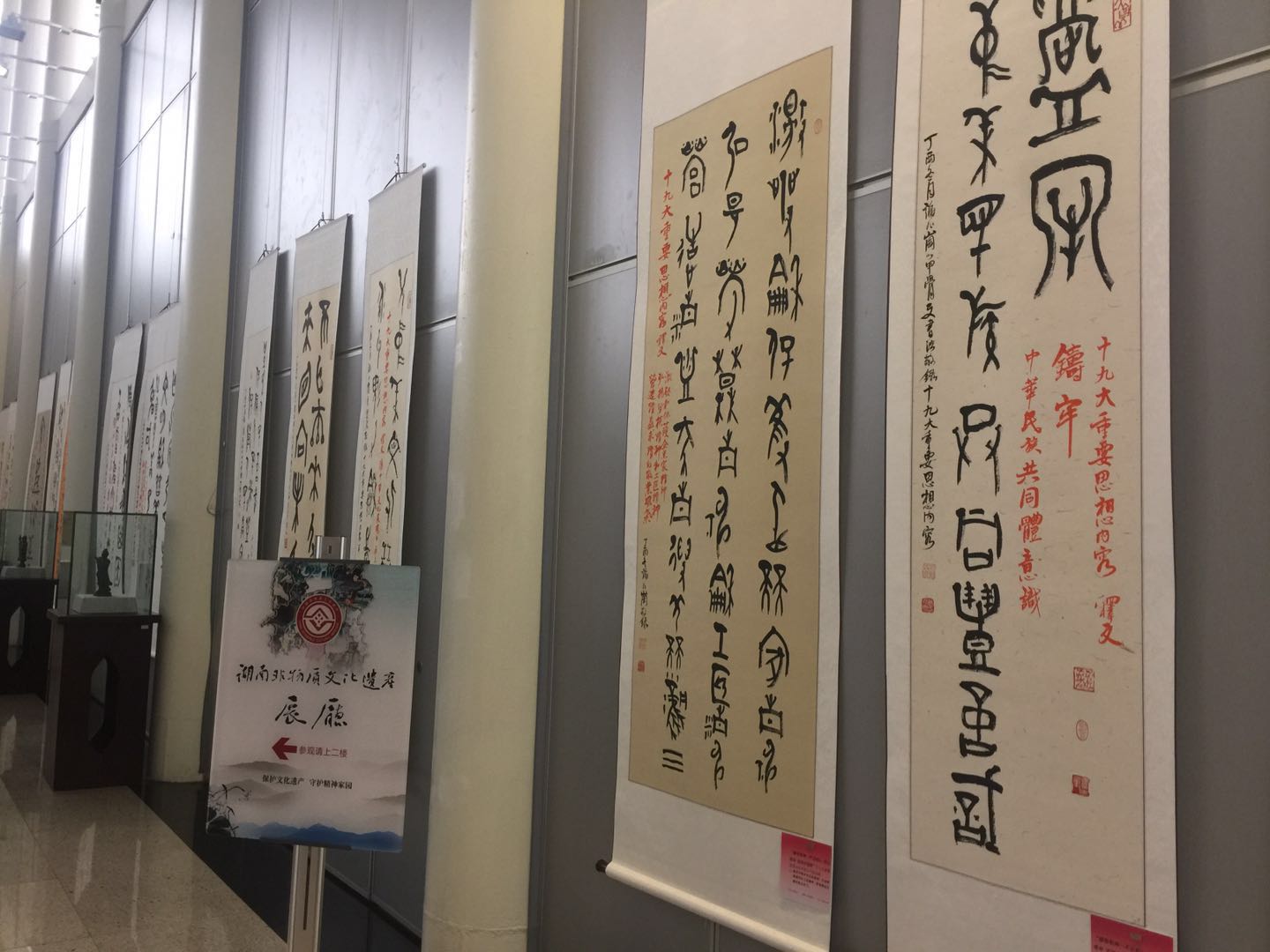 【香港商报网讯】记者唐勇平报道: 3月16日至31日,极具中华民族最优秀传统文字艺术的“盛世乾坤--不忘初心 牢记使命 实现中国梦”习近平治国理政思想名句用典甲骨文书法巡展首站在湖南省文化馆举行,展出168件国内外名家甲骨文书法精品。场面盛大,湖南甲骨文学会会长谢兆岗等出席了开幕式。