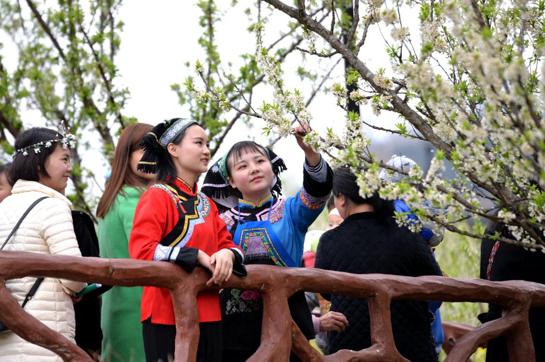 当天记者在沙子街道南庄村现场看到,雪白雪白的李子花,盛开在通往南庄村的大大小小的河坝和山坡上,一树树、一丛丛连接成片的小白花在枝上迎风摇曳。这漫山遍野的花簇犹如大雪过后银装素裹,美不胜收,在青山绿水间构成了一幅幅动感的画卷。