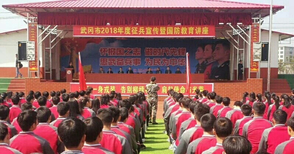 潘忠华高中时学习成绩不理想,曾经对未来人生很迷茫,12年前踏上了从军的征途。军营淬火,让潘忠华这块“生铁”锻造成了“好钢”——在部队拿了29个第一,两次荣立三等功。2015年8月19日,他在北京人民大会堂作先进事迹报告,受到各级领导的亲切接见。曾泰岳2013年高中毕业后入伍,2016年考入中国人民解放军炮兵防空兵学院,先后获得“优秀义务兵”、“优秀学员”和三等功等荣誉,目前被推荐为全国优秀共青团员候选人。通过调查摸底,武冈市人武部邀请潘忠华和曾泰岳回乡担任代言人,前往展辉学校、富田学校、武冈十中、武冈一中、职业中专等多所学校举办征兵宣传暨国防教育讲座。通过分享坚守从军梦想,在部队苦练本领的经历与体会,他们鼓励广大适龄青年积极参军,到部队建功立业,实现人生价值。