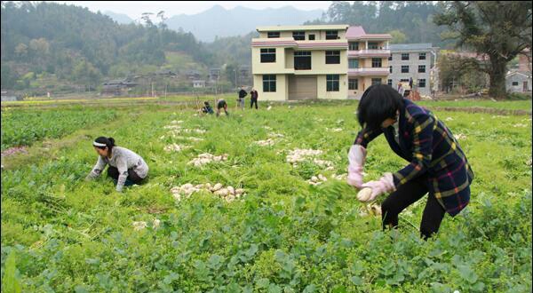 【香港商报网讯】近日,邵阳绥宁县关峡苗族乡插柳村村民杨友菊组织劳力,抓紧将自家田里种植的白萝卜拔出、装车,送往绥宁县新湘茂农林产业发展有限公司。杨友菊是该县建档立卡贫困户,去年冬天种植了5亩萝卜,共收获了4万斤左右,单这一项产业,她家就稳定增收1万多元。