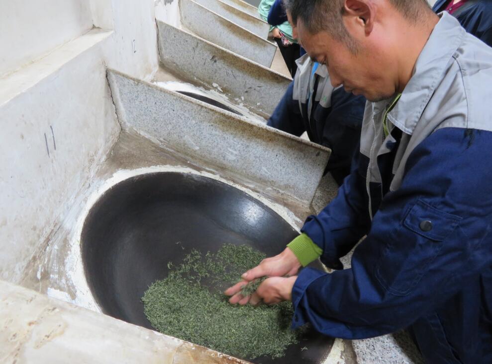 吴中区金庭镇西山天王茶果场,师傅正在炒茶。