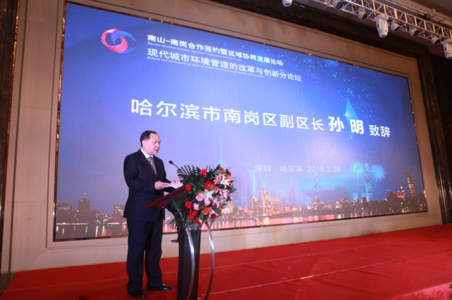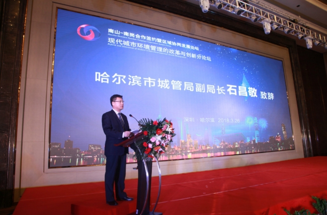 【香港商报网讯】为全面贯彻党的十九大精神,按照国务院关于推进新一轮东北地区等老工业基地振兴战略的决策部署和省、市、区委的工作要求,扎实有效推进深哈对口合作工作,在“粤黑”、“深哈”合作大背景下,根据2018年深圳市南山区和哈尔滨市南岗区联合召开“深圳市南山区与哈尔滨市南岗区合作签约暨区域协同发展论坛”活动相关工作部署,3月26日下午《现代城市环境卫生管理的改革与创新》高峰分论坛在哈尔滨如期召开。