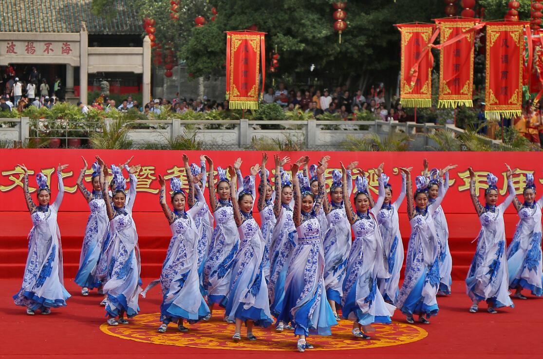 【香港商报网讯】记者朱桦、黄裕勇,通讯员毛丽丽、李周耿、赖伟敏报道:以“海丝长福地·波罗多良缘”的主题的第14届广州民俗文化节暨黄埔“波罗诞”千年庙会今天正式开锣。开幕式上,来自泰晟龙师团的民俗表演《龙狮贺诞》拉开了为期三天的庙会序幕,接着《赛龙夺锦》、《貔貅劲舞》、《凤舞鸾梦》、《青花瓷韵》等最具岭南特色的非遗类表演节目和大型舞蹈类民俗节目引来众多游客驻足观赏拍摄。
