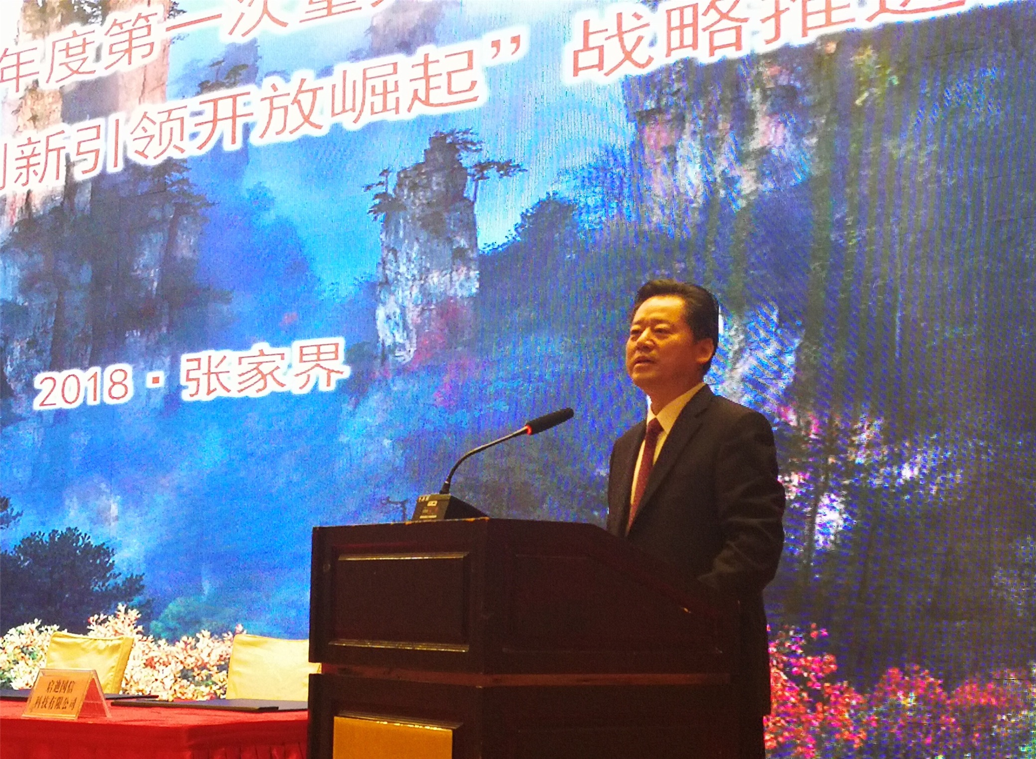 張家界市委副書記、市長劉革安表示,張家界旅遊積極對接國家“一帶一路”倡議,引來投資總額達668億元的19個項目簽約落地,充分證明了張家界良好的投資環境和不可估量的發展機遇。特別是張家界與絲綢之路國際總商會、大唐西市集團共同打造的國際交流平台,將是我國內陸地區旅遊文化率先對接國家“一帶一路”倡議,實現張家界旅遊文化走向世界的創新之舉。