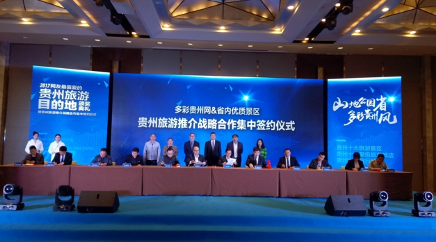 活动现场,与会嘉宾共同为获得2017年度网友最喜爱的贵州十大旅游景区、十大星级旅游饭店、十大旅行社的单位颁发证书,30余家参会景区就贵州旅游推介战略合作事宜进行集中签约。同时,还公布了参与投票的幸运网友名单,其中,10名幸运网友将获得十大旅游景区免费门票各2张、星级旅游饭店豪华单间住宿体验券1晚;20名幸运网友将受邀参加“2017年度网友最喜爱的贵州旅游目的地”评选活动旅游团。