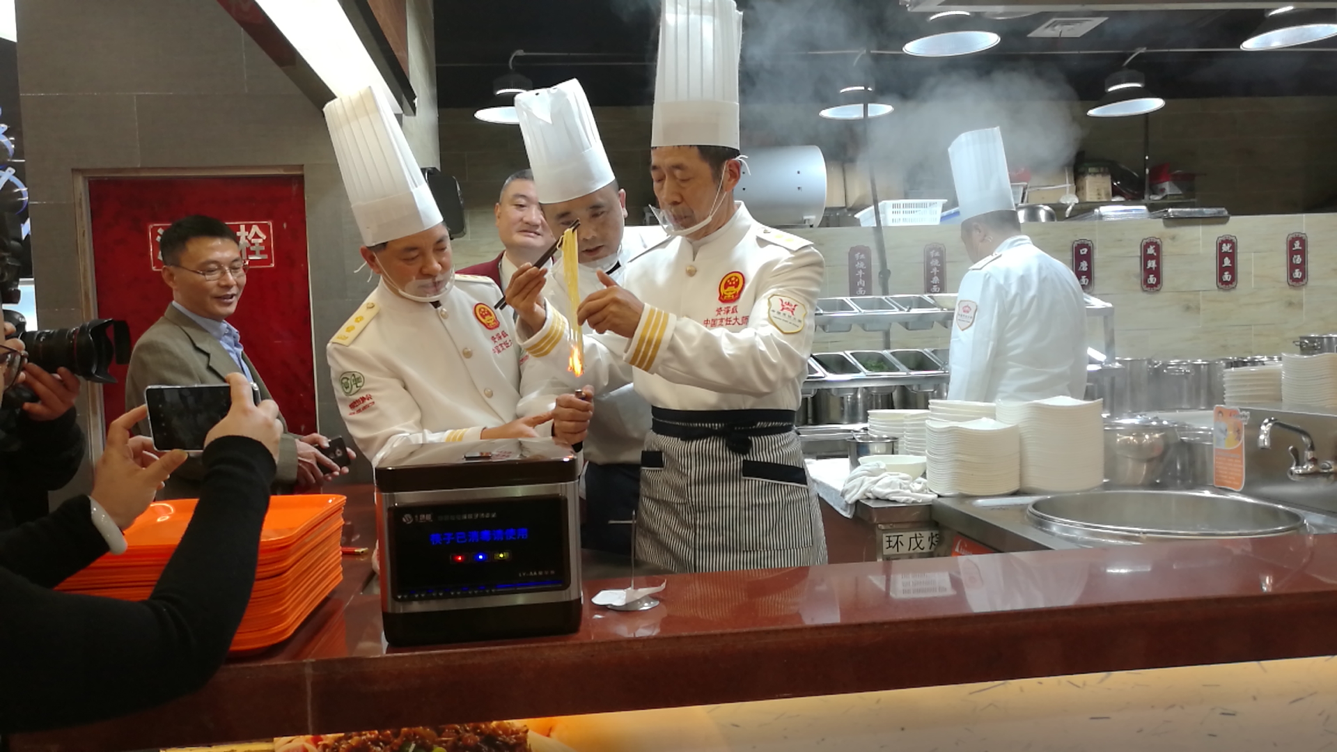大廚們正在用打火機點燃宜賓燃面