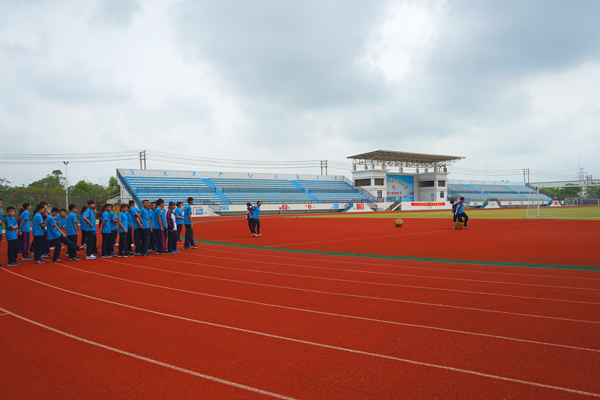 学校的体育场。为期一个月的运动会人人参与