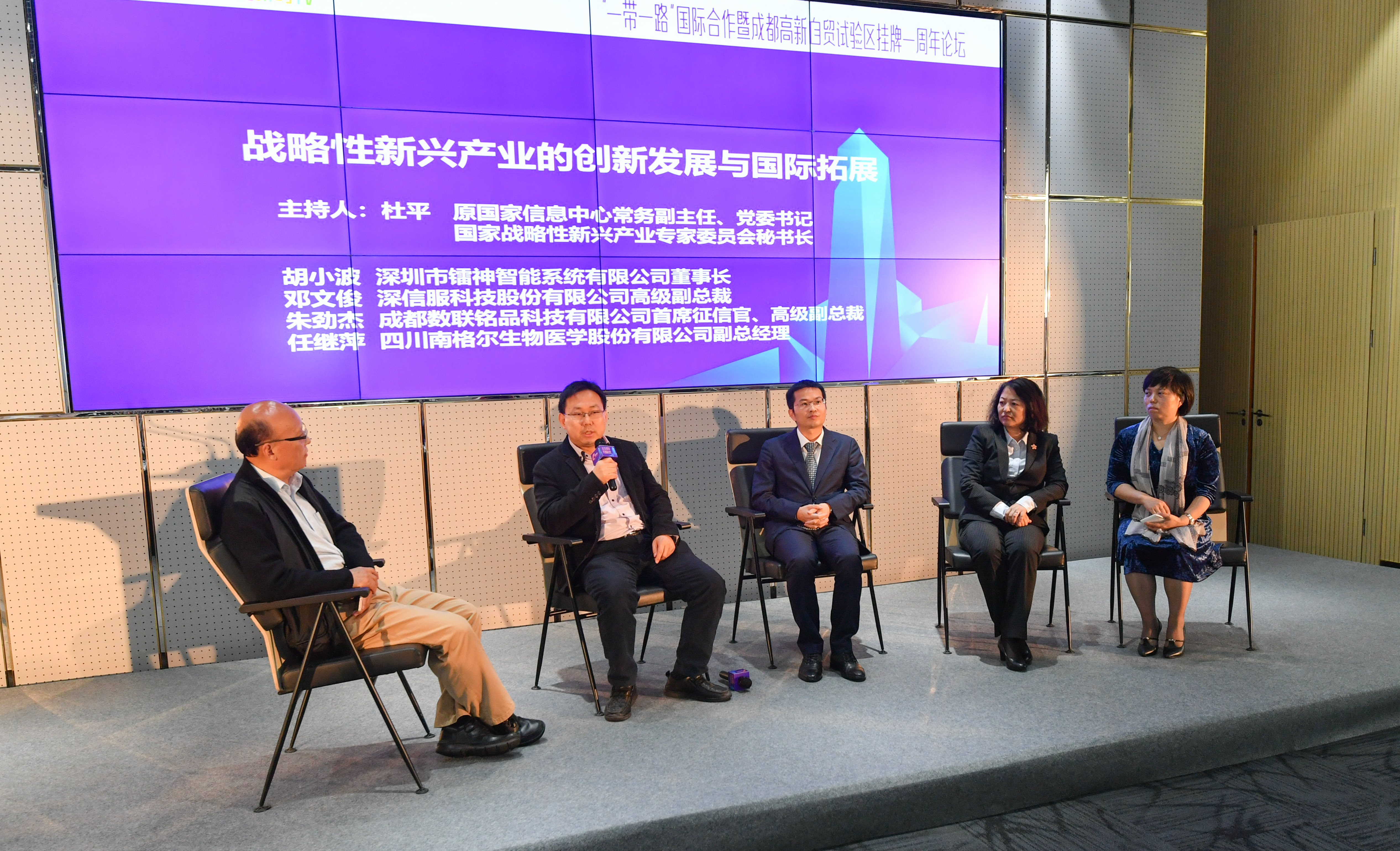 立足戰略性新興產業創新發展,全面實時對外開放走出去。論壇上,深圳市鐳神智能系統有限公司董事長胡小波,深信服科技股份有限公司高級副總裁鄧文俊,成都數聯銘品科技有限公司首席征信官、高級副總裁朱勁傑,四川南格爾生物醫學股份有限公司副總經理任繼萍結合“戰略性新興產業的創新發展與國際拓展”這一話題,深入探討了“一帶一路”倡議下戰略性新興產業如何實現國際貿易的全面發展。