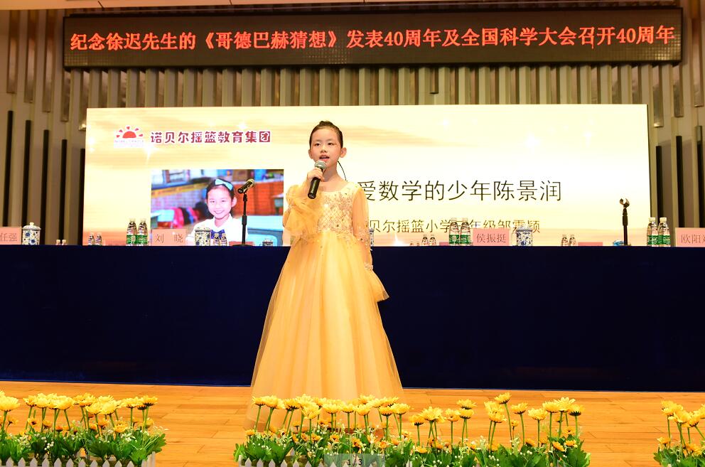纪念活动在庄严的升国旗仪式中开始,一部短片《永恒的春天》过后,诺贝尔摇篮小学三年级同学邹霖颖给大家声情并茂地讲述《独爱数学的少年陈景润》的故事,一下子把大家带到40年前,将注意力投向那个最先靠知识改变命运的主人翁身上。