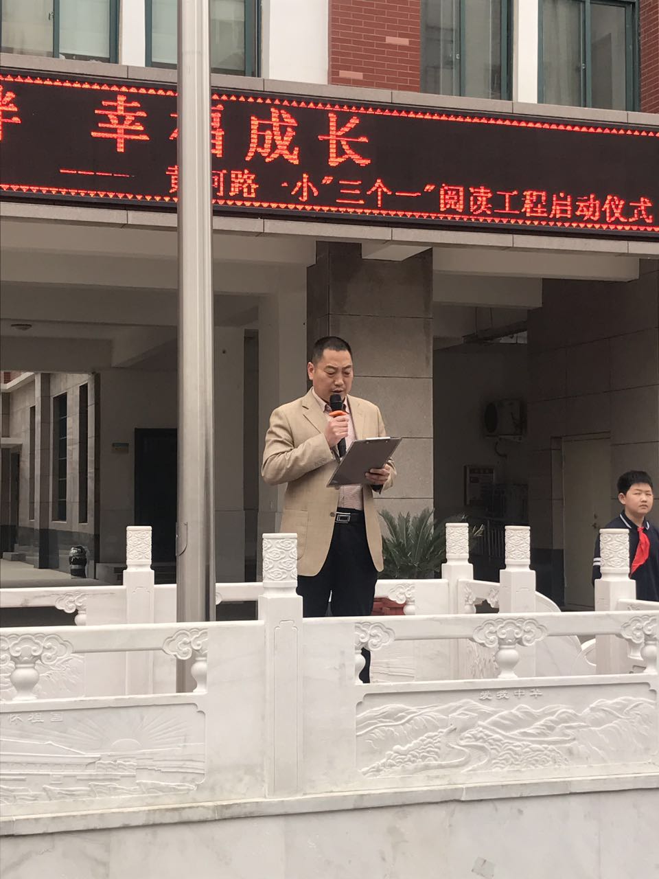 【香港商报网讯】记者王皓萍报道:“与书为伴,幸福成长”,为深入推进“书香校园”建设,培养学生良好的阅读习惯,使书香充满校园。4月3日下午,郑州市金水区黄河路第一小学举办了“三个一”阅读工程启动仪式,全体师生和部分家长参加了此次启动仪式。