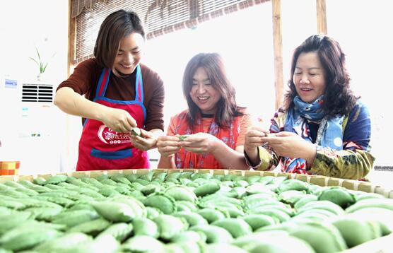 【香港商报网讯】记者吴敏 通讯员吴建平报道:临近清明节,安徽黄山市歙县桂林镇金坑村一亩山庄"徽姑娘"王海英(左一)忙得不可开交。王海英从小跟母亲制作"清明饺",开办一亩山庄农家乐用"土货"招揽游客,"清明饺"成了春日里的一道"招牌菜",慕名学艺、闻香品尝来的游客带动了乡村旅游。