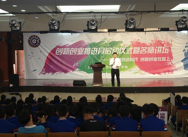 成忠强调,在"大众创业、万众创新"的背景下,在中职学校开展创新创业教育,鼓励学生自主创业是深化中职教育教学改革,培养学生创新精神和实践能力的重要途径。他结合自身的职场经历和学生就双创进行了交流分享,引导学生更深入的了解双创,鼓励学生自主创业,指出未来创新创业的趋势方向。