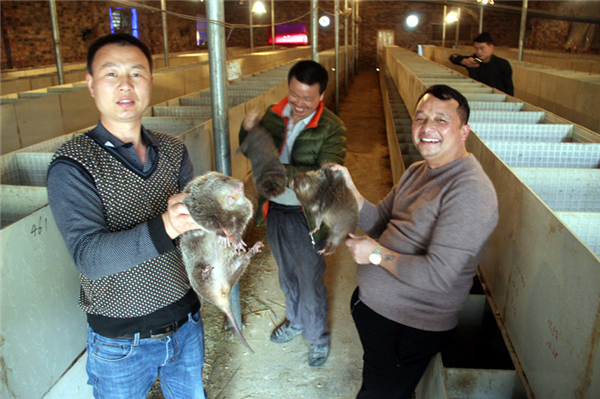 “个人富不算富,大家富才是真正富”。周义军谈到养竹根鼠深思熟虑对记者说,2015年,他结对9户贫困户脱贫,2016年他结对12户贫困户脱贫,去年与周边23名贫困户结对请他们来基地喂养竹鼠,每人每月发工资3000元,帮他们脱贫。