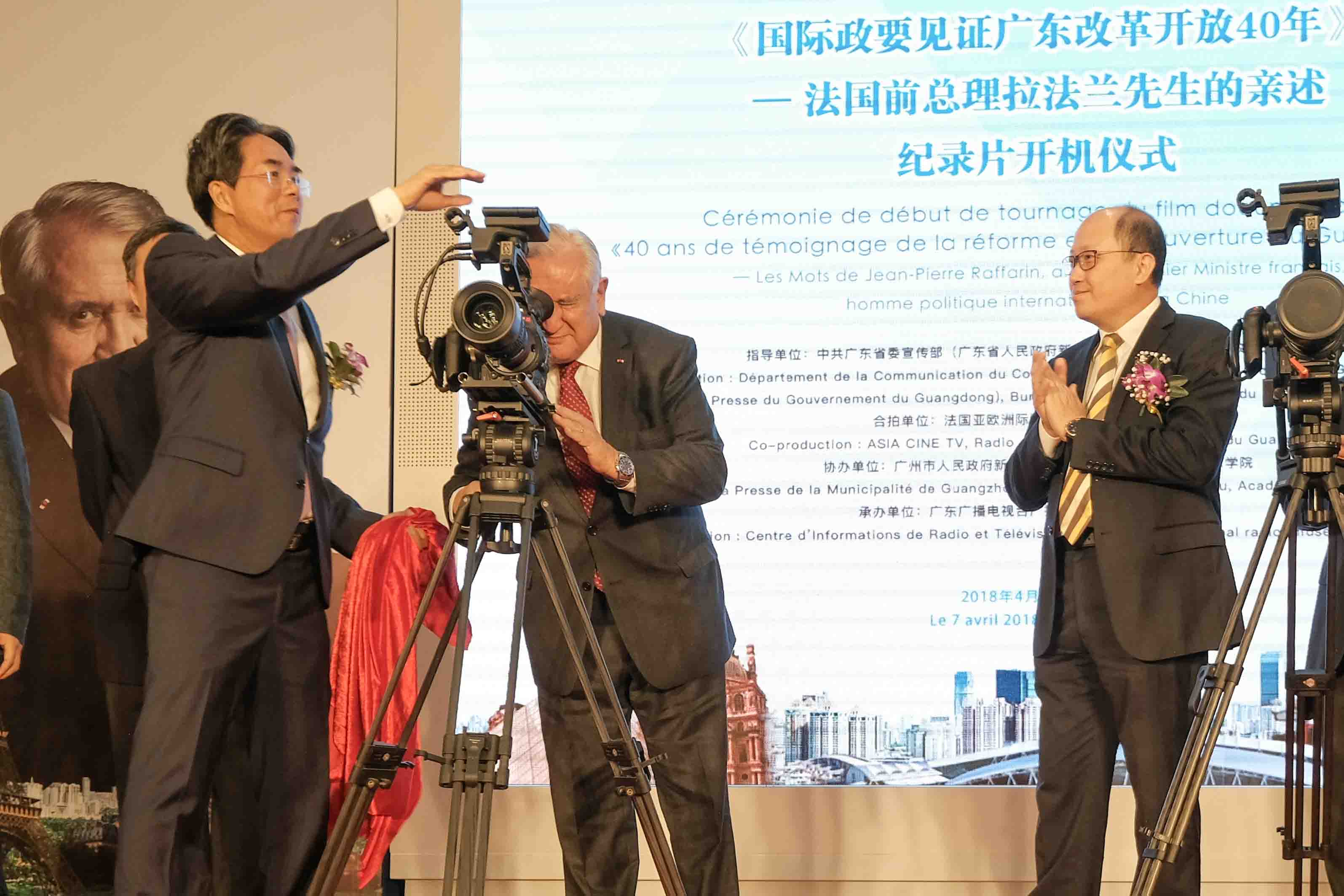 【香港商报网讯】 记者 朱桦 广州电:《国际政要见证广东改革开放40年》纪录片4月7日在广州图书馆举行开机仪式,该纪录片的拍摄是广东省为庆祝改革开放40周年而举办的系列活动之一。纪录片将采用目前最先进的4K超高清技术拍摄。法国前总理让-皮埃尔·拉法兰将在片中以欧洲资深政要的视角,讲述他访问广东、与广东人民交往的所见所闻、所感所悟,以亲身经历见证改革开放40年来广东发生的沧桑巨变与取得的伟大成就,向世界展示一个坚持中国特色社会主义的广东、创新发展的广东、改革开放的广东、走在前列的广东。