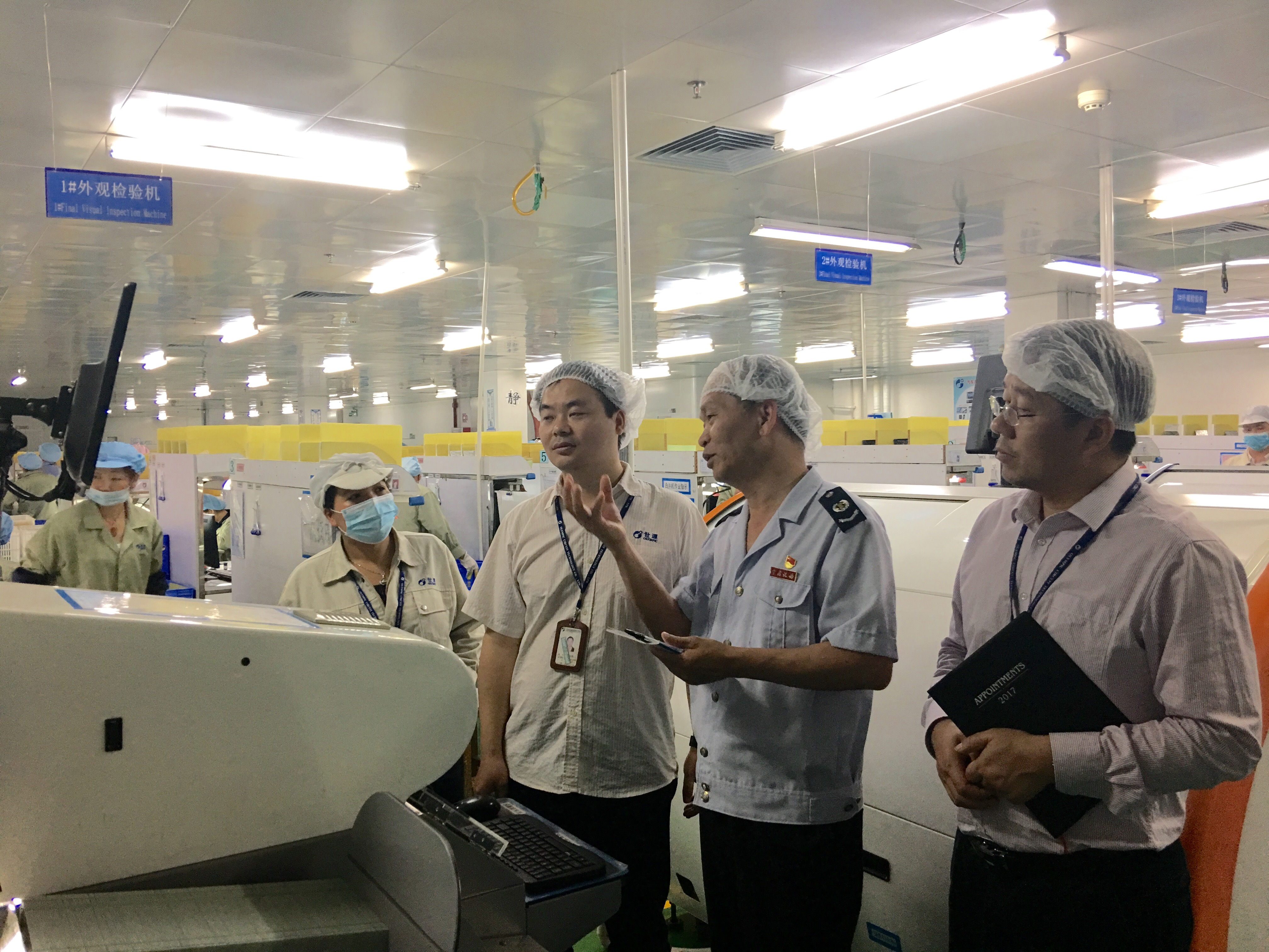 江门税务人员到企业车间了解情况,讲解企业关注的税收优惠政策。