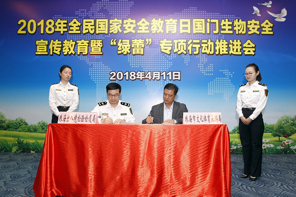 在推荐会上,珠海检验检疫局与珠海市文化体育旅游局签署了《关于加强国门生物安全宣传和文明旅游工作合作备忘录》,共同加强国门生物安全宣传和文明旅游工作,引导游客自觉遵守相关法律法规,自觉践行文明旅游。