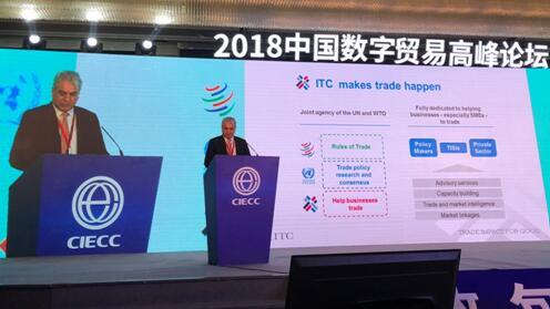 随后,以“开放包容、普惠共赢”为主题的2018中国数字贸易高峰论坛如期举行。浙江省人民政府副省长朱从玖、商务部原副部长廖晓淇出席并致辞,联合国国际贸易中心贸易便利化高级顾问Mohammad Saeed、浙江省商务厅厅长盛秋平、中国国际电子商务中心副主任付诚、上海社科院世界经济研究所主任沈玉良等发表了主题演讲,共同展示了中国数字贸易的发展动态,向国际数字贸易领域发出了中国声音。