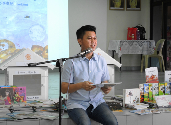 【香港商报网讯】记者张宇马来西亚吉隆坡报道:汝来国民型华文小学终于有共享书箱了,4月7日,拥有近百年历史的马来西亚汝来国民型华文小学礼堂内,一个为共享书箱捐赠图书而举行的公益活动吸引了当地人的目光。让大家感到意外的是,马来西亚教育部副部长张盛闻先生也加入到书箱计划推广的队伍中,并带来了600册图书。现场,他亲自用汉语与孩子们互动分享了一个《小黑鱼》的故事,鼓励孩子们多读书。他对记者说:书箱以“拿一本,还一本”的概念进行,以鼓励民众有好的阅读习惯,打造更有文化气息的地区。绘本雨林、吉隆坡城中扶轮社、北京《东方少年》杂志社一起策划并举办这次活动,以扶轮雨林故事“趴趴走”为主题,带着书箱计划走进华文学校,培养孩子阅读习惯。“趴趴走”主题活动两天进行了多项活动,包括讲故事、画图画、律动舞、亲子阅读等。北京《东方少年》杂志代表王恒涛先生、乐利来国际董事长邱多福先生代表中国图书出版机构完成总数为千余册新书的捐赠活动。