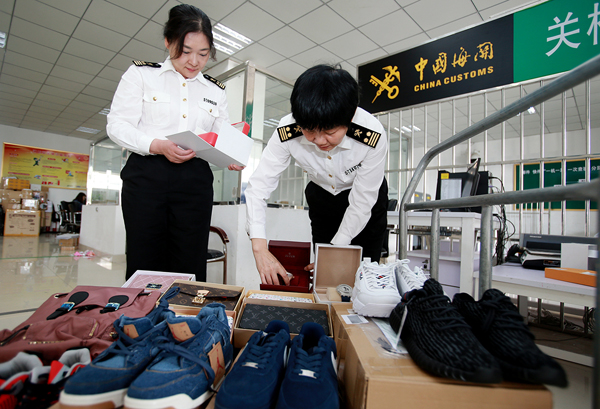 据悉,5天前,九洲海关关员还在拟寄往智利的邮包中查获假冒“NIKE”等品牌运动鞋5双。