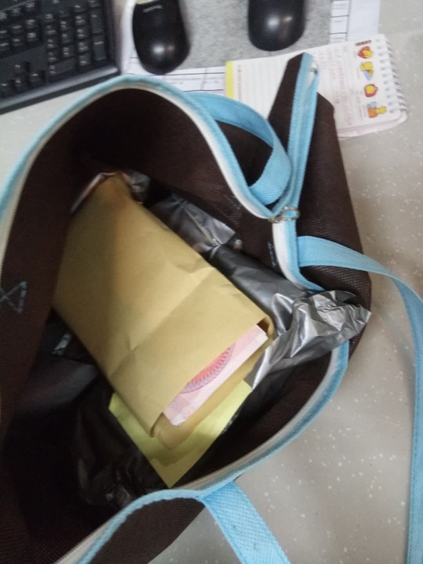 本月11日下午5点多,广州东山口地铁站C口安检点已人头攒动,安检员邓越旺正在核查过物品,眼尖的他突然发现安检机出包口有个环保袋孤零零的躺在那没人带走。在确认袋子不属于可疑物品后,他立即通知班长,上报车站工作人员和警方到场共同确认。当众人打开袋子准备清点的那一刻,让人吃惊的一幕发生了:袋子里用纸包着一叠叠的现金,总计十五万六千五百元正。然而翻遍环保袋也没找到与失主关联的任何信息。于是车站马上循环播放寻物广播寻找失主,希望这位“大头虾”乘客能够及时听到。
