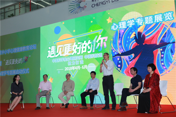 到场的心理学专家及领导嘉宾共同启动了“遇见更好的你”心理展开幕仪式。本次心理学专题展包含36件心理科技展品,以“完善自我,理解他人,遇见更好的你”为主题,以体验作为主要设计理念,考虑了不同年龄和不同需求观展者的心理需求,配合情景化、互动化、艺术化的展览形式,通过对气质人格与智力、情绪认知与管理、人际交往与沟通、压力调节与心理健康及自我价值实现等五大内容进行展览。