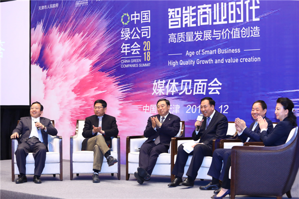 当日媒体见面会上,天津市人民政府副秘书长,滨海新区区委副书记、区长杨茂荣,滨海新区人民政府副区长夏青林,中国企业家俱乐部理事长、国际公益学院董事长、原招商银行行长马蔚华,中国企业家俱乐部副理事长、新奥集团股份有限公司董事局主席王玉锁、中国企业家俱乐部副理事长、AAMA亚杰商会会长、原清华控股有限公司董事长徐井宏,以及中国企业家俱乐部秘书长程虹出席并从不同角度介绍了今年中国绿公司年会的筹备情况。
