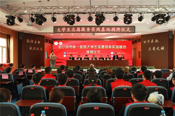 【香港商报网讯】4月13日,哈尔滨市第一医院与哈尔滨工程大学、东北农业大学、哈尔滨理工大学、哈尔滨学院共同举办“哈尔滨市第一医院大学生志愿服务实践基地”揭牌仪式。本着“奉献、友爱、互助、进步”的志愿服务理念,哈尔滨市第一医院与高校学府一道为培养文明友爱的当代大学生,为构建文明互助的人文型医院,为有力推动健康龙江的全面建设迈出了坚实有力的一步。据悉,这也是省内首家医院与高校学府联手揭牌的“大学生志愿服务实践基地”。该基地的落户为哈尔滨这所文明城市增添了一道亮丽的风景线。