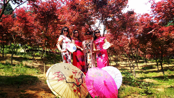 记者一行来到枫叶谷旅游度假区看到,枫树集中区域已经漫山飘红,春游、度假的游客或在林中拍照,或在树荫下小憩,惬意悠然。