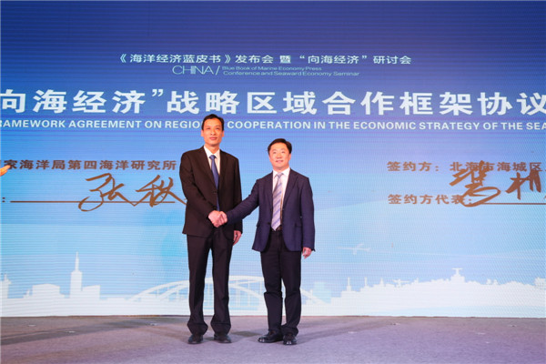 【香港商报网讯】4月12日,由中国海洋大学、国家海洋局第四海洋研究所主办,中共北海市海城区委员会、北海市海城区人民政府承办的2018年《海洋经济蓝皮书》发布会暨“向海经济”研讨会在广西北海举行。