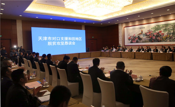 【香港商报网讯】记者邢宝华报道:作为2018津洽会的系列活动之一,天津市对口支援和田地区脱贫攻坚恳谈会于13日召开。天津市工商联、市农委、市合作交流办和西青区、津南区、宝坻区相关负责人与新疆有关部门进行了深入座谈,并签订备忘录,明确了具体的帮扶举措。