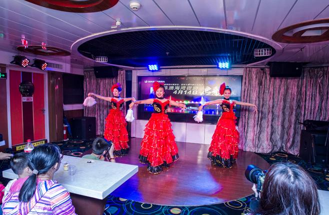 陀家阳告诉记者,湾仔旅游码头是航线的起止点,途经珠海国际会展中心、横琴金融岛、澳门新葡京娱乐城、澳门三座跨海大桥、珠澳口岸人工岛、最后看到世纪工程——港珠澳大桥。观赏完系列景点后返航,航线途中还安排精彩节目和各式精美糕点。此条海上旅游线路为每天两个航班,开航时间分别为晚上18:30和20:10,全程约100分钟。