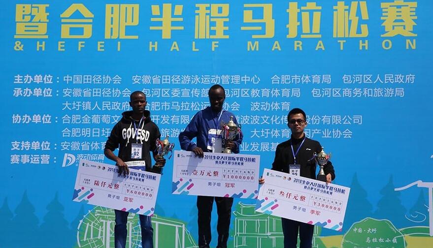 【香港商報網訊】記者龔舒斌 通訊員李多慶報道:4月15日上午8:30,2018生態大圩國際半程馬拉松暨合肥國際半程馬拉松賽在合肥市包河區大圩鎮鳴槍開跑。1萬多人參賽,經過緊張激烈的角逐,來自肯尼亞的選手BOIT JACOB KIPLIMO獲得半程馬拉松項目男子組的第一名,來自中國的朱芹紅獲得半程馬拉松項目女子組的第一名。
