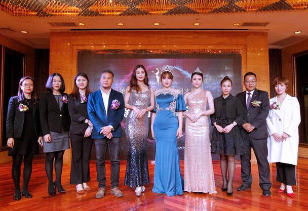 赛事组委会部分代表与历届佳丽在发布会上合影。