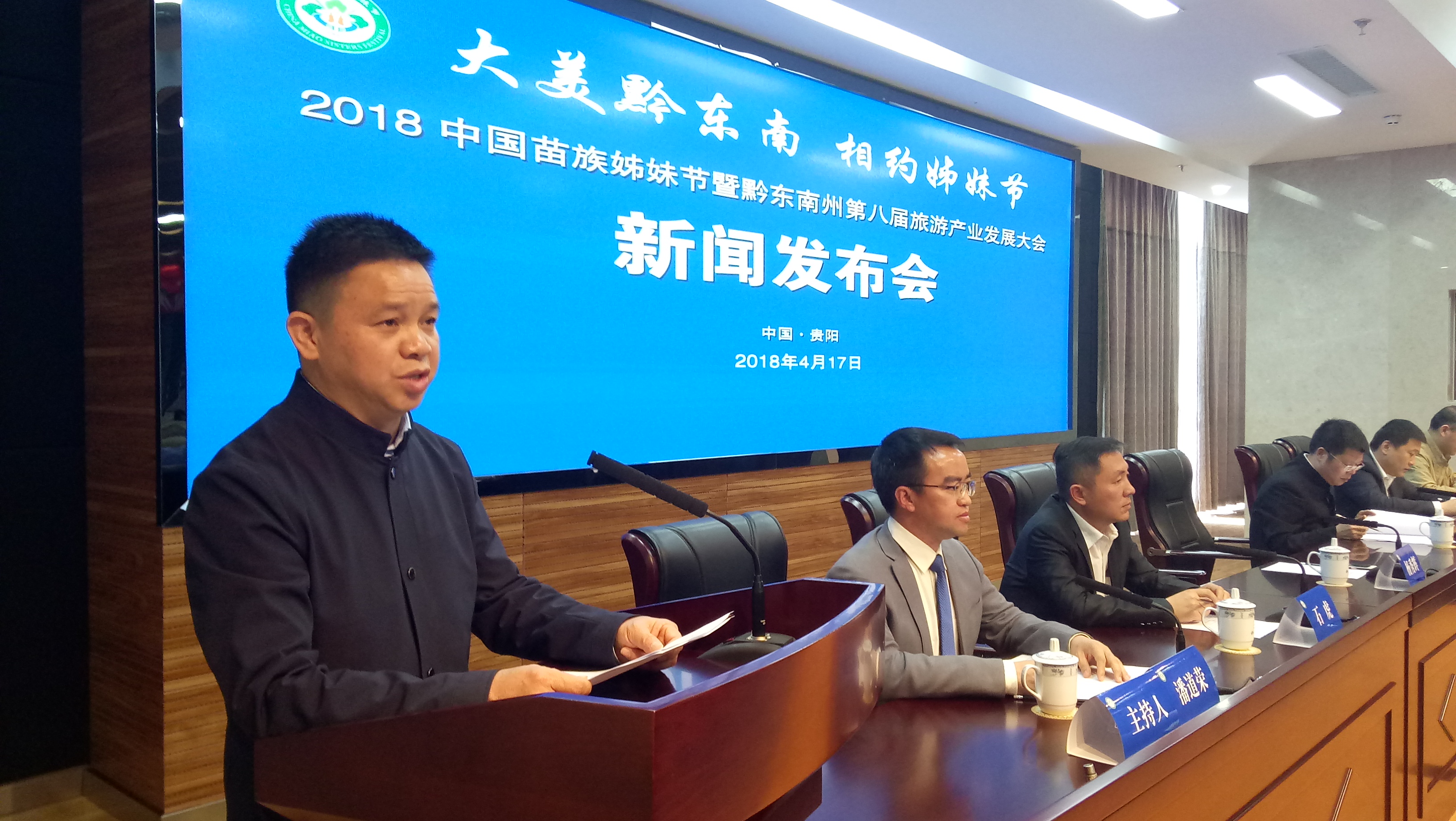新聞發布會上,台江縣長杜賢偉在旅遊推介中說,苗族姊妹節發源於台江縣施洞鎮、老屯鄉一帶,流行於黔東南清水江中遊和巴拉河下遊苗寨,每年農曆三月十五至十七日舉行,有“藏在花蕊裏的節日”和“最古老的東方情人節”之稱,2006年被列為第一批國家級非物質文化遺產名錄。每到姊妹節時,苗族同胞都要舉行盛大的苗族服飾展演、遊方對歌、送姊妹飯、歌舞比賽、體育競技等獨具文化內涵的精彩活動,他們用智慧和靈巧,一代又一代的活態編織人類愛情婚姻發展的曆史,一代又一代的傳承保護優秀的民族文化。