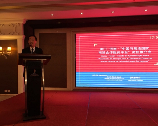 【香港商报网讯】为加强中国内地、葡语国家及澳门的合作与交流,4月17日下午,澳门·河南——中国与葡语国家商贸合作服务平台商机推介会在郑州召开。河南省副省长戴柏华、省商务厅副厅长李若鹏、澳门贸易投资促进局主席张祖荣及河南省、郑州市企业,以及葡语国家商/协会代表和企业家等逾150人出席了推介会。