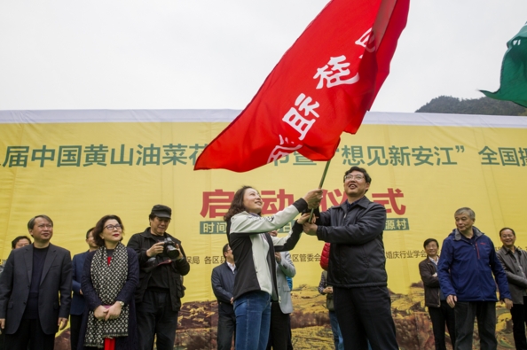 第八届中国黄山油菜花摄影节上,向自驾团、摄影采风团、户外团和媒体团授旗 吴孙民 摄