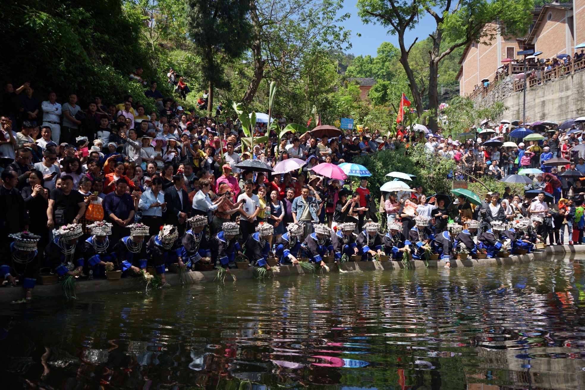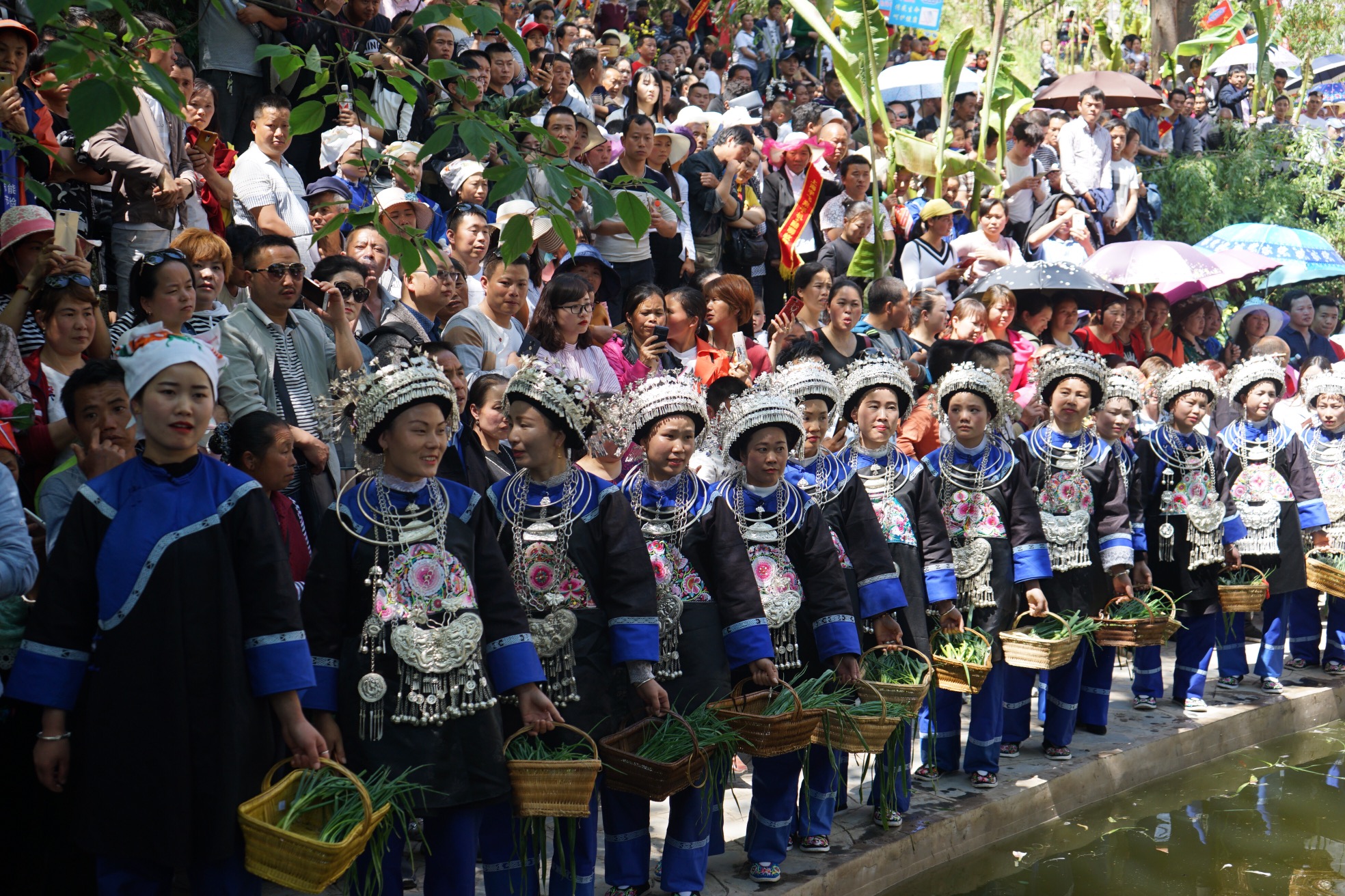 【香港商报网讯】记者许入介报道:18日,以“合力攻坚 决战脱贫”为主题的“三月三”讨葱文化节在贵州镇远报京举行。热情好客的侗家儿女在莫嘎树下对情歌、跳芦笙舞,并摆起了长桌宴,邀请四海宾朋共度这欢乐、和谐、喜庆的传统民俗文化节日。