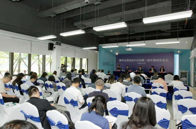 横琴自贸试验片区召开挂牌三周年新闻发布会现场。