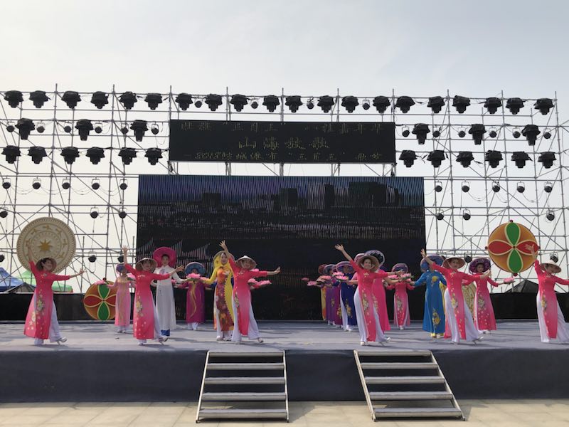 【香港商报网讯】记者馨瑶、徐玉莹报道:4月18日,“山海放歌—2018防城港市‘三月三’歌节”在江山旅游度假景区举行,为“壮族三月三•八桂嘉年华”系列活动营造了浓厚的节日气氛。据介绍,这场大型文艺歌舞表演包括独弦琴、天琴、打陀螺、采茶戏、京壮瑶舞蹈、疍家文化、民族服饰表演,还融入了大秧歌、马头琴等其他民族的表演。活动还邀请了中央民族歌舞团的歌唱家以及壮乡歌后王春燕等演员;越南、泰国、老挝等东南亚国家的歌手和文艺团队前来演出。演出丰富多彩,亮点纷呈。