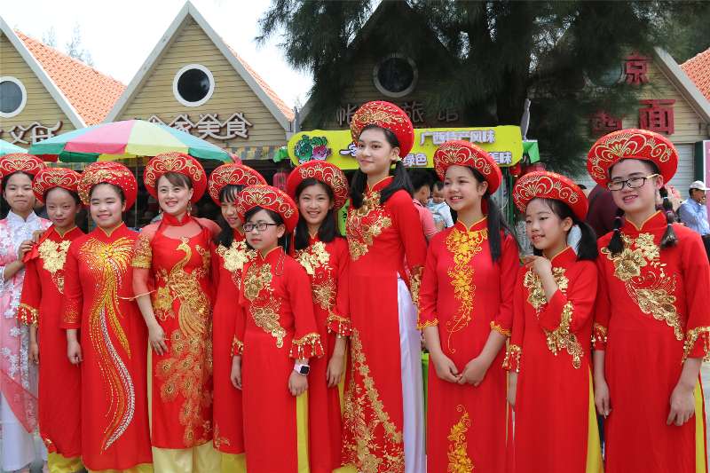 据了解,今年防城港市三月三系列活动特色十分鲜明。防城港市拥有230公里的陆地边境线和580公里的海岸线,在这次活动中,边境群众利用设施完善的“国门文化大院”,盛情邀请毗邻的越南边民前来参加,加强两国边民的友好往来和经验交流,创新“文化睦邻”举措的边关特色。东兴市京族三岛开展的“赶海”、拉大网捕鱼等活动;港口区在企沙渔港开展的渔歌对唱、开大蚝、开螺、织大网、绞缆绳等比赛趣味性十足,凸显“海洋文化”特色。壮族风情展示、壮族天琴展演、壮族五色糯米饭制作展示、壮族舞鹿、陀螺比赛、京族服饰展演、瑶族服饰展示等充分展示了风情独特的“非遗”特色。壮、汉、京、瑶四个世居民族同时开展活动,多民族共度“壮族三月三”。