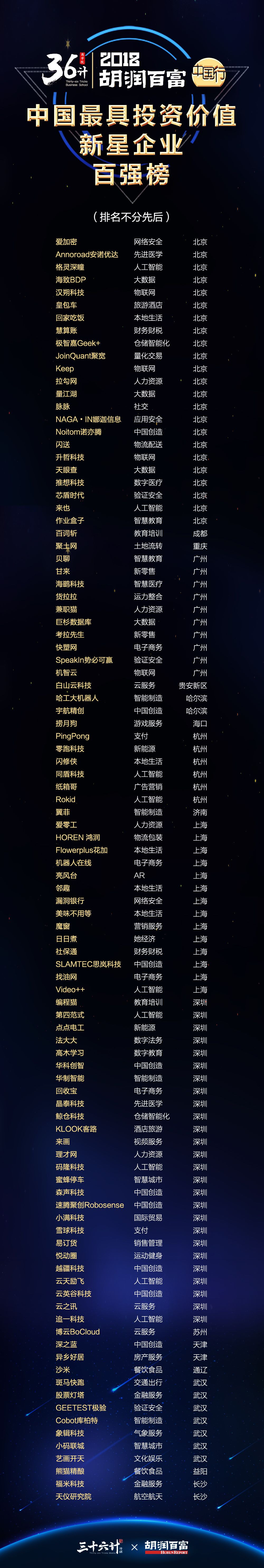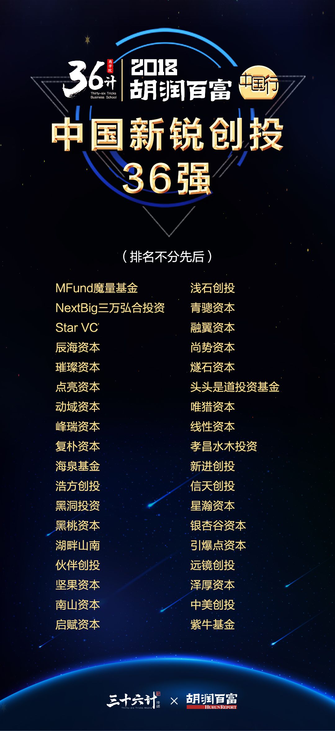 当晚,胡润与王牧笛共同发布了36计·胡润百富《2018中国最具投资价值新星企业百强榜》和36计·胡润百富《2018中国新锐创投36强》两份重磅榜单。