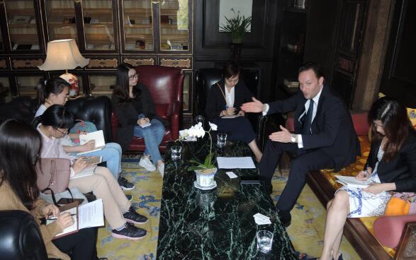 欧洲科技商会会长Florian Von Tucher接受媒体采访