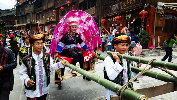 据了解,“谷雨节”就犹如侗家男女青年的“情人节”,活动期间,肇兴侗寨开展了“抬官人”等传统民俗活动。村民用轿子抬着身穿节日盛装的姑娘或小孩(俗称“官人”)巡游,喜迎谷雨到来,以此祈福风调雨顺、五谷丰登。 “抬官人”是肇兴侗寨最为隆重的民俗活动之一,已传承300多年。每年谷雨,肇兴侗寨都要开展丰富多彩的民俗活动进行欢庆,有抬官人、吃乌米饭、抹花脸等等,活动吸引众多国内外游客前来参加体验。