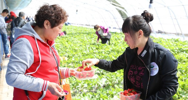 男女老少齐上阵,一边体验采摘草莓的乐趣,一边品尝。“这个草莓可以吃出来童年时的那个味道,特别香甜。”市民张学杰品尝了一颗草莓告诉记者。“我们一家三口今天是自驾过来的,一方面带孩子走进菜地,让孩子开阔视野,一方面我们也通过活动多了解咱们省的绿色食品。”市民王杰说。