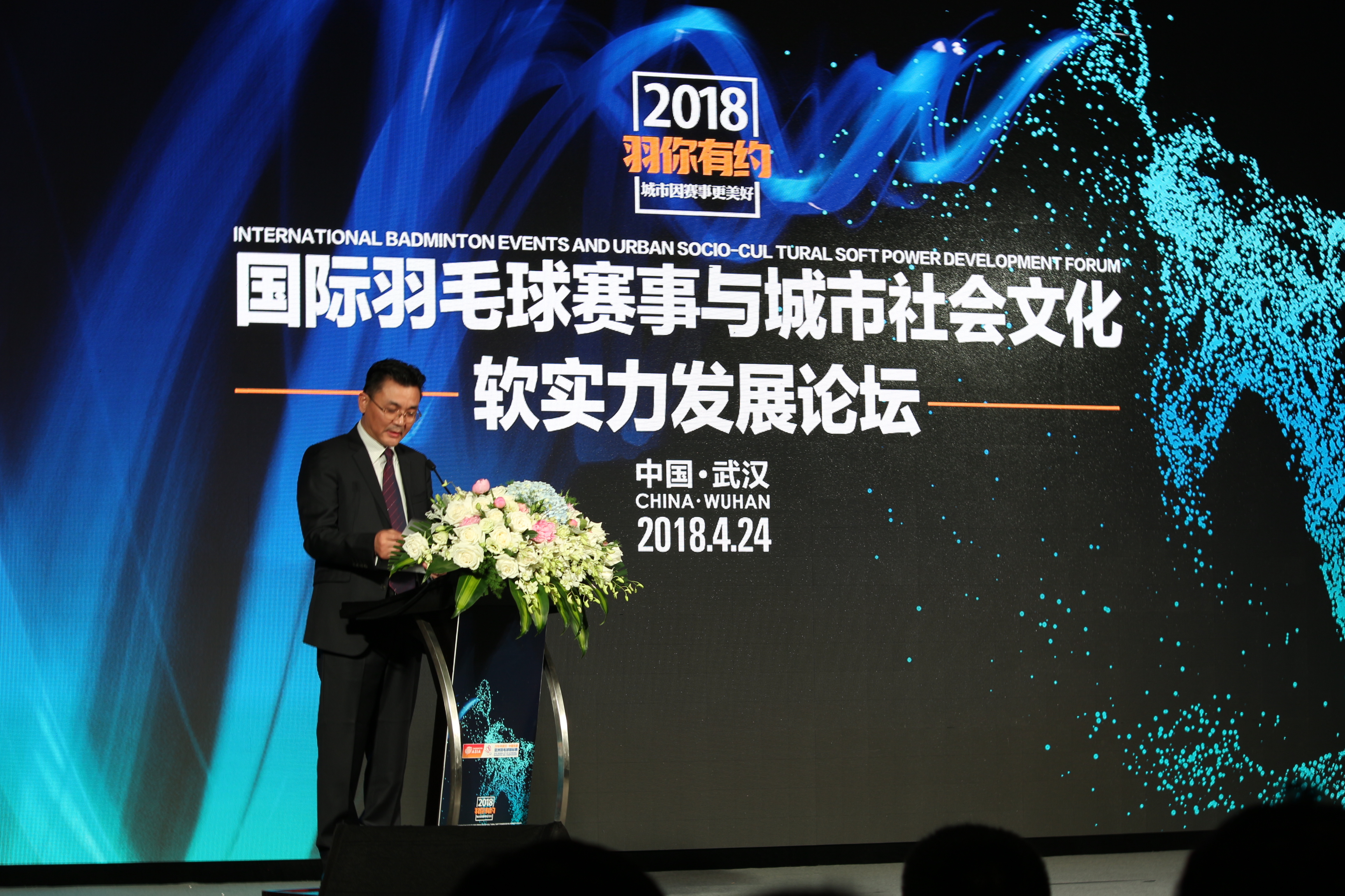 【香港商報網訊】4月24日9時, 2018年國際羽毛球賽事與城市社會文化軟實力發展論壇在武漢召開。此次論壇以“體育賽事與城市社會文化軟實力發展——城市因賽事更美好”為主題。亞羽聯賽事組委會主席BAMBANG ROEDYANTO、中國羽毛球協會秘書長王偉、武漢開發區工委委員、漢南區委常委、工委(區委)宣傳部部長馮愛明、湖北省體育局副局長水兵出席論壇並發表開幕致辭。