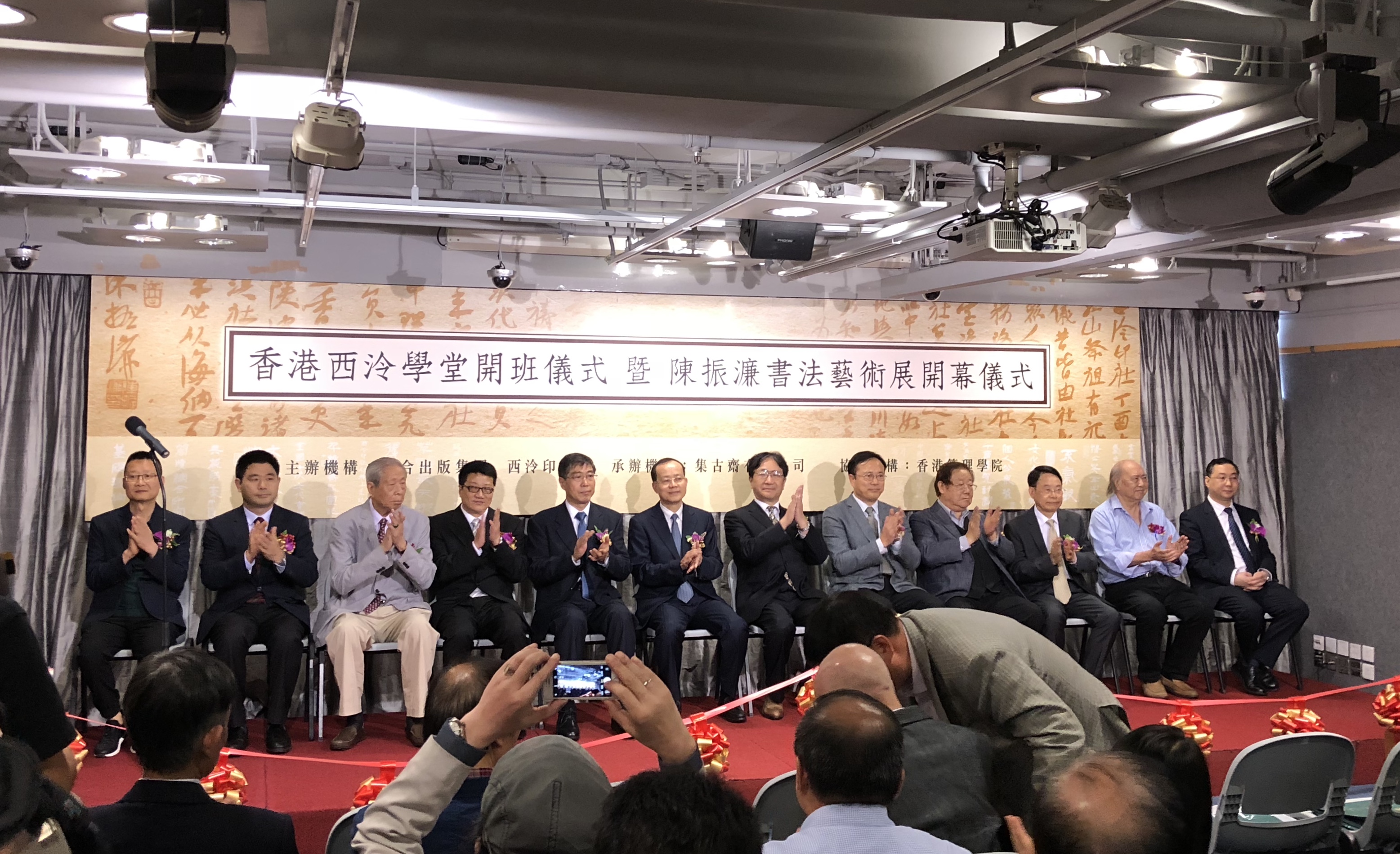 【香港商報網訊】記者謝國平報道:2018年4月23日,“香港西泠學堂開班儀式暨陳振濂書法藝術展開幕儀式”在中環集古齋畫廊隆重舉行。中聯辦副主任楊健,外交部駐港特派員公署副特派員趙建凱,聯合出版集團副總裁李濟平,西泠印社副社長兼秘書長丶著名書法家陳振濂等政商名流出席主禮,逾百位嘉賓出席開幕式。
